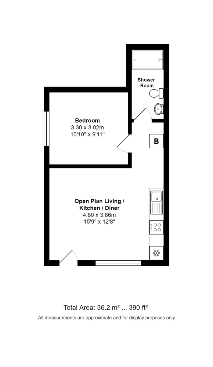 PROPERTY SUMMARY A recently converted and fully refurbished, one bedroom ground floor flat with private entrance, allocated parking space and a new 10 year building guarantee. The accommodation offers 390 sq ft of accommodation and comprises: private front door leading to a 15' open plan kitchen / living room; double bedroom and shower room. To the front of the apartment is a fenced courtyard leading to the parking apron at the front with one allocated space. Viewing of this impressive flat is strongly recommended in order to appreciate both the accommodation and location on offer.