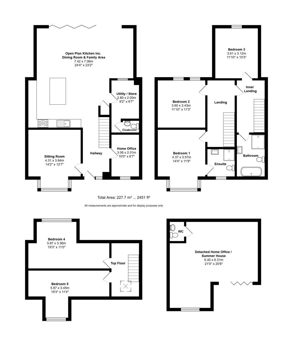 DETACHED HOME OFFICE / SUMMER HOUSE 21' 0" x 14' 5" (6.4m x 4.39m) Increasing to maximum 20'8" Six skylight windows, ceiling spotlights, power points, electric radiator, wood laminate flooring, wiring for wall mounted T.V., double glazed window overlooking garden, bi-folding doors to decked area, zoned lighting.