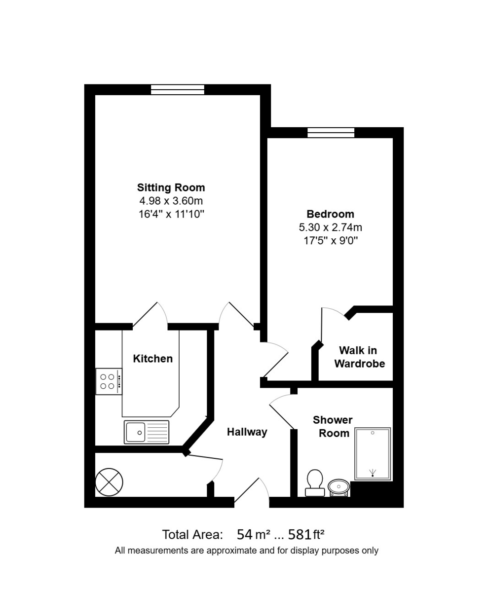 Apartment 53 is located on the third floor at the rear of the building with 581 sq ft of living space comprising; hallway, large walk-in airing cupboard with shelving, shower room with low level shower tray, 17' bedroom with walk-in wardrobe, 16' sitting room with patio doors to false balcony and fully fitted kitchen. Located at the rear of the building the main rooms overlook the communal patio and seating areas.