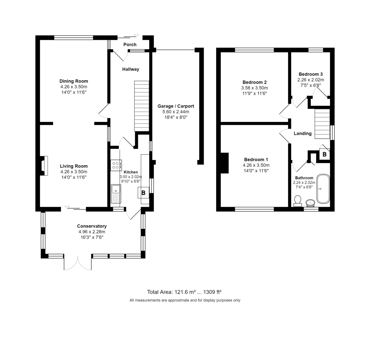 BEDROOM 1 14' 0" x 11' 6" (4.27m x 3.51m) Double glazed window to rear aspect overlooking garden, radiator.