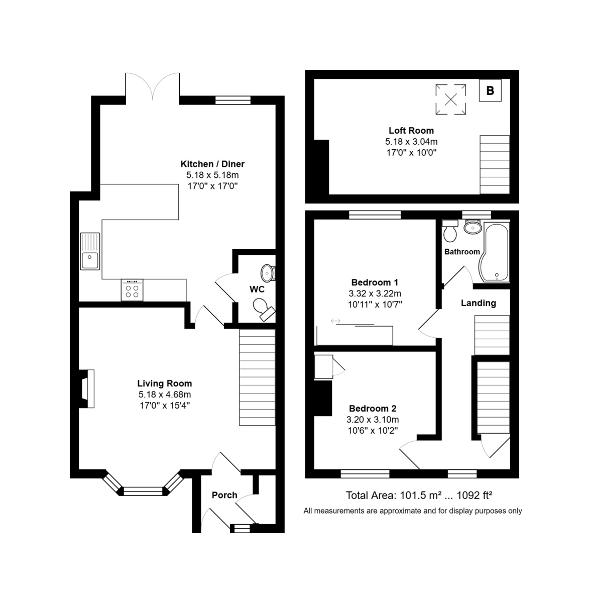 FIRST FLOOR Double glazed window to the front aspect, doorway leading to the stairs rising to the loft room, twin ceiling light pendants, doors to: