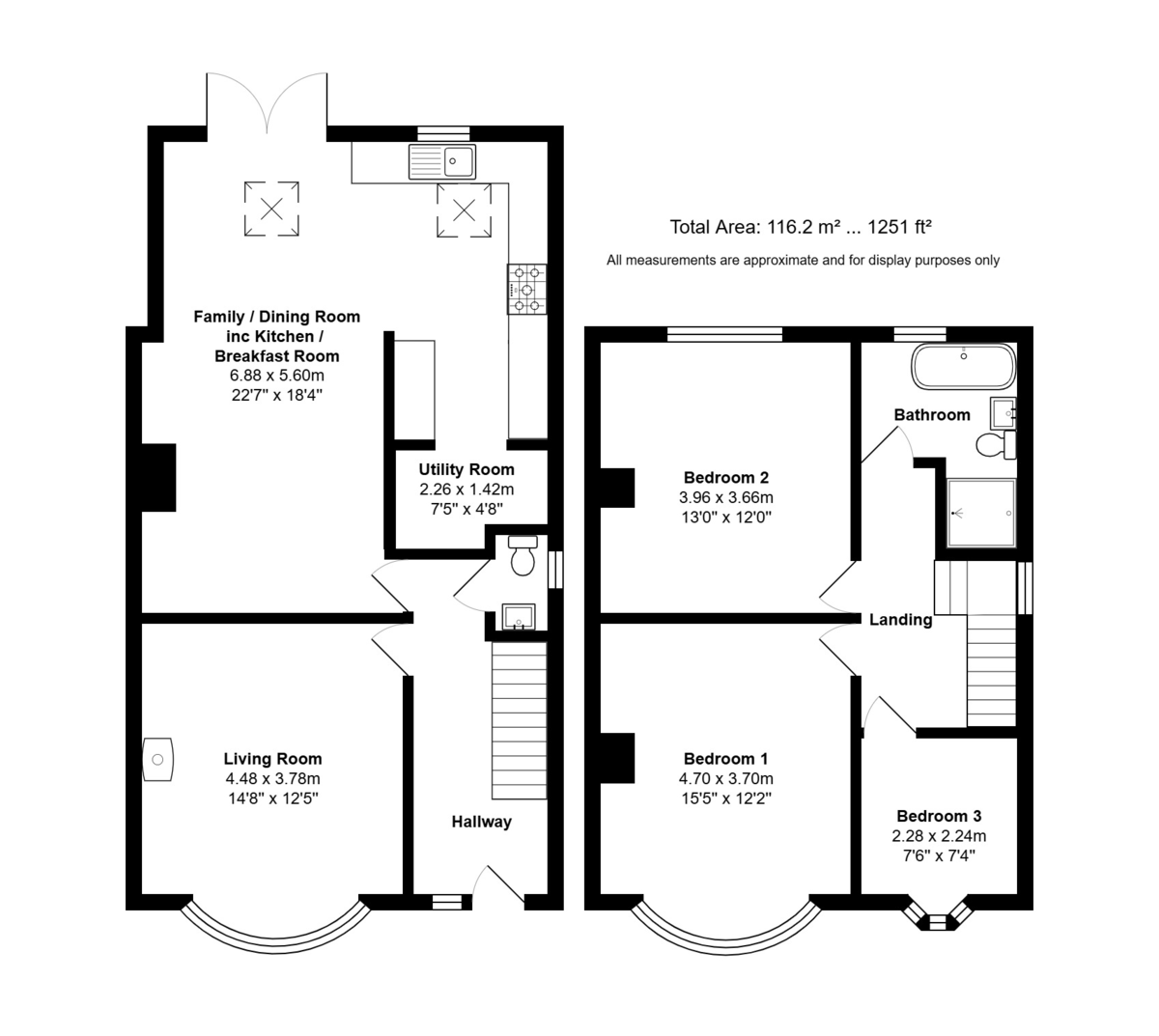FIRST FLOOR Landing with balustrade, double glazed window to side aspect, access to loft space via extendable ladder, doors to primary rooms.