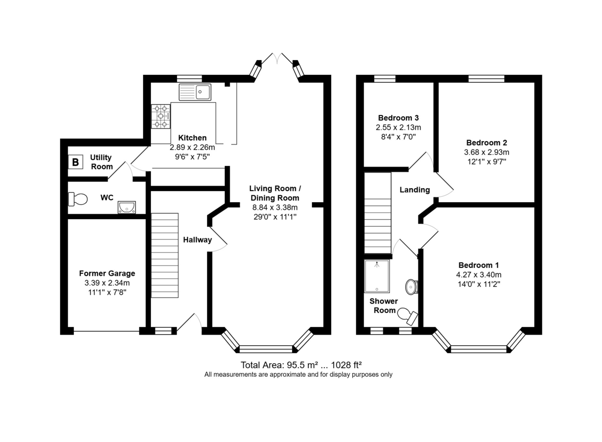 FORMER GARAGE 11' 1" x 7' 8" (3.38m x 2.34m) Up and over door.