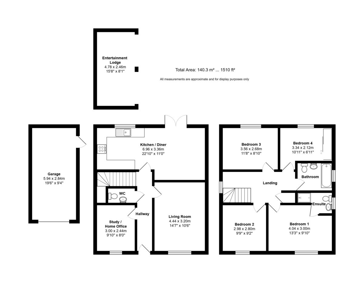 PROPERTY SUMMARY A modern, four bedroom detached family home which is situated in an attractive development of similar style homes. No.3 has 1203 sq ft of living space arranged over two floors and comprises; study, 14' living room, cloakroom and 22' kitchen/dining room on the ground floor with four bedrooms, the primary one having an en-suite shower room and family bathroom on the first floor. To the front is a garden and garage with off road parking, to the rear is an established enclosed garden with a detached entertainment lodge. The property is offered with the remaining six years of an NHBC certificate, double glazing, solar panels, gas fired central heating, side pedestrian access and no forward chain. Situated in the heart of Denmead, a village which is next to the Forest of Bere and rural farmland, the village still holds its village feeling with a chemist, vet, barbers and hardware store, there are two schools, Denmead Infant and Junior and King George's Field where the village cricket, football, tennis and bowls clubs are based. Early internal viewing is strongly recommended in order to appreciate both the accommodation and location on offer.