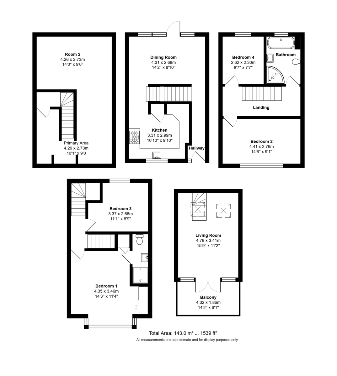 PRIMARY AREA 14' 1" x 6' 5" to doorway (4.29m x 1.96m) Wall mounted gas and electric meter with consumer box, high level power points with trunking, washing machine point. The passageway inter-linking two rooms is 5'11" x 23'9" maximum leading to: