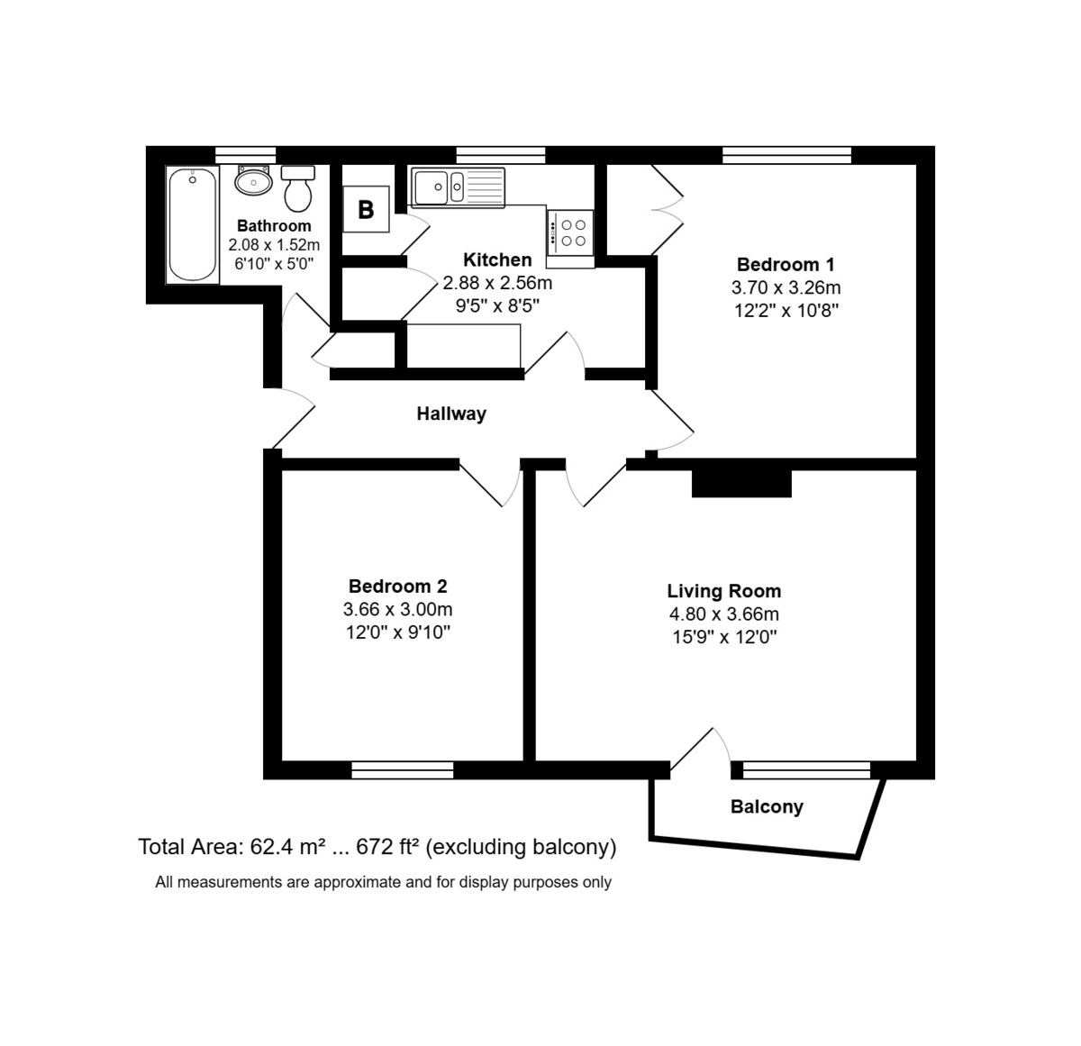 LIVING ROOM 15' 9" x 12' 0" (4.8m x 3.66m) Double glazed window and door to front aspect leading to balcony, radiator, laminate flooring.