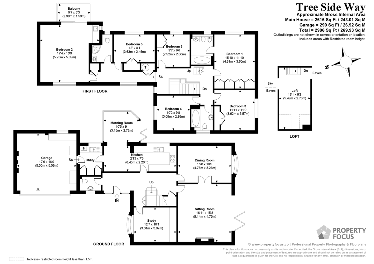 PROPERTY SUMMARY Although sitting in a primary residential cul-de-sac location No.9 can only be described as unique, as it backs onto established woodland and has been extended to create 2906 sq ft of living space arranged over two floors. The property is reached via a private gravel driveway providing access to only three other neighbouring homes with woodland to one side. On reaching the house you will find ample car parking and access to a double integral garage. The accommodation comprises: hallway, cloakroom, study, sitting room with twin doors leading to a large dining room, kitchen with breakfast area and morning room off as well as a utility room and double garage on the ground floor with six bedrooms, the master having a large en-suite bathroom, a separate shower room and family bathroom on the first floor. The loft space has been converted to create extra storage space, accessible via a folding ladder. The gardens wrap around the house on two sides with a southerly aspect and large patio areas, to the rear is the opportunity to overlook woodland with wild flowers and trees. The property is set back along a private gravel driveway within a cul-de-sac location, yet within easy reach of local shopping amenities, bus routes, Jubilee Park recreation ground, the Queens Inclosure, Heritage Stream Primary, Junior and Secondary Schools, as well as commutable road links via A3 (M) linking to the south coast in approximately fifteen minutes.